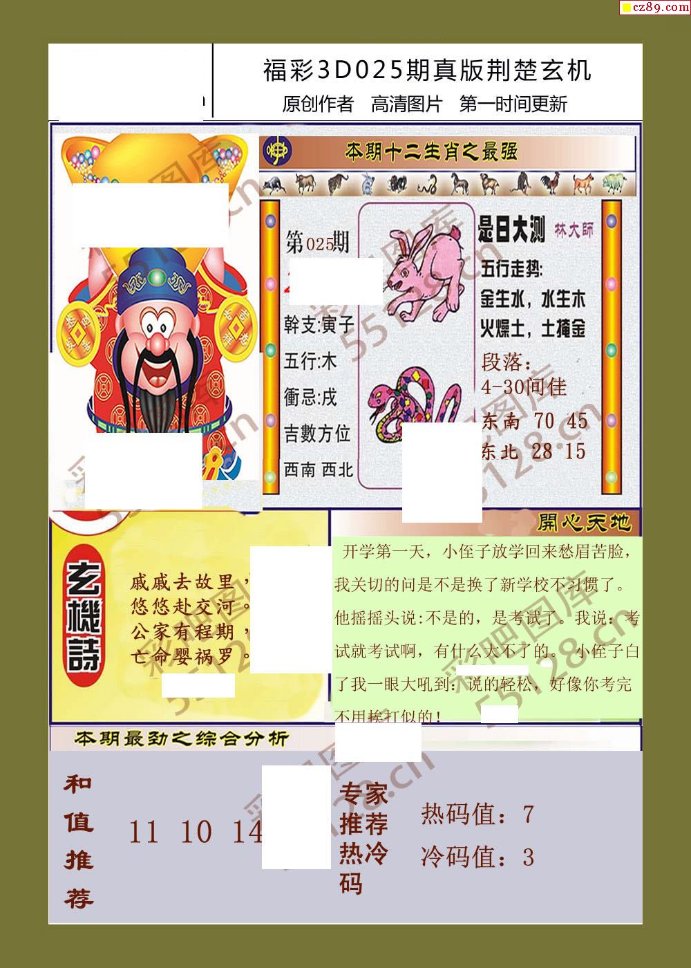 26福彩3d025期真版荆楚玄机彩报