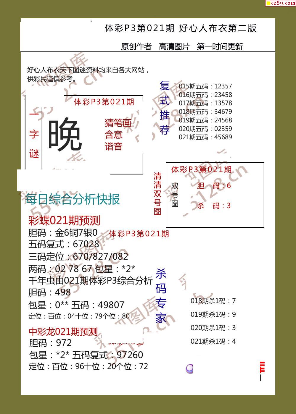 2026年021期牛彩网体彩P3画迷图谜汇总分享