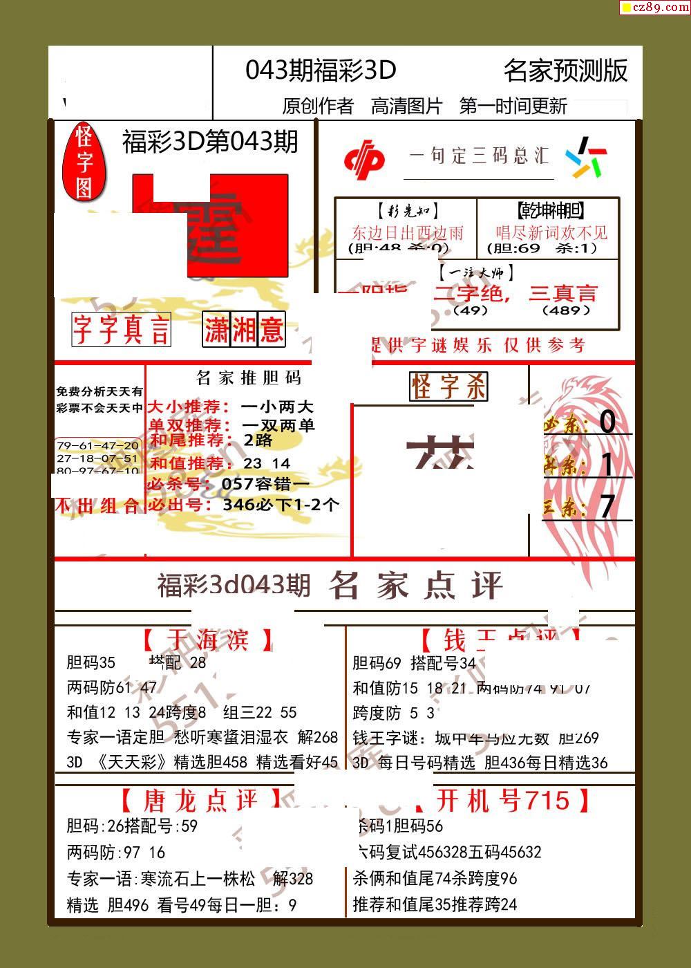 > 26年043期福彩3d牛彩名家预测图谜