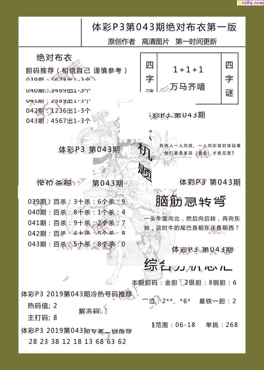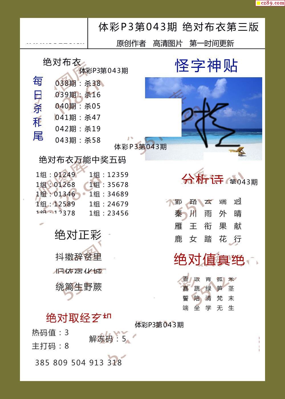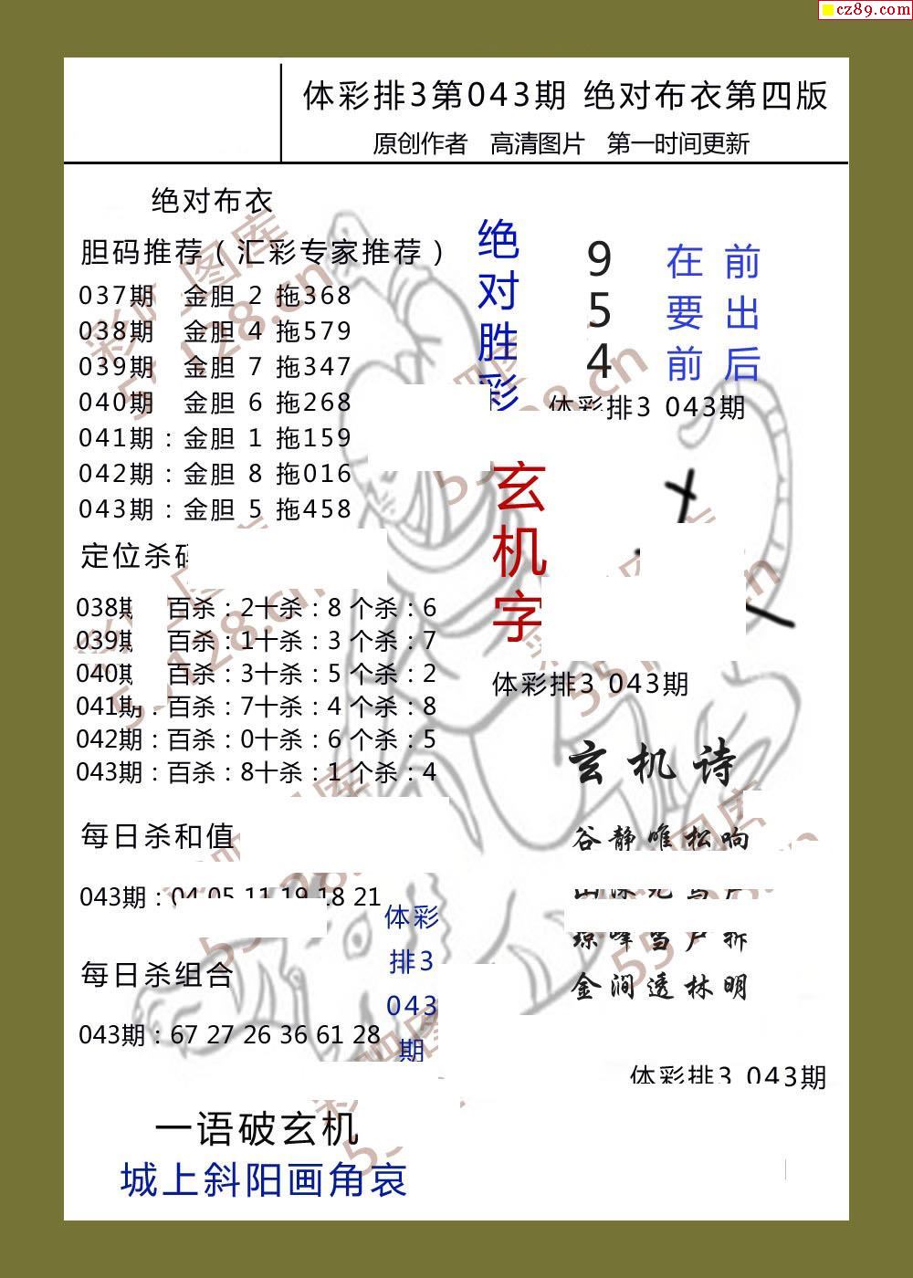 > 绝对布衣043期体彩p3图谜
