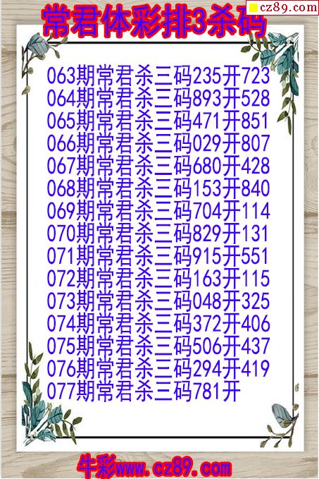 > 26年077期常君体彩排3杀码图